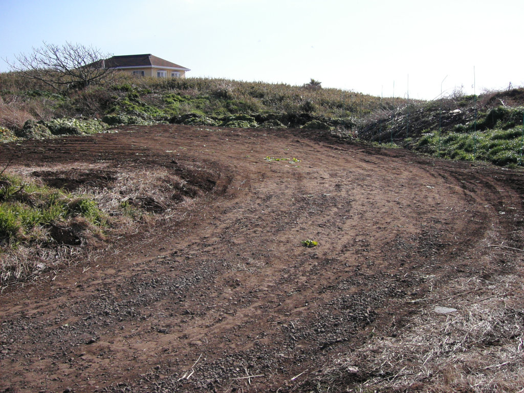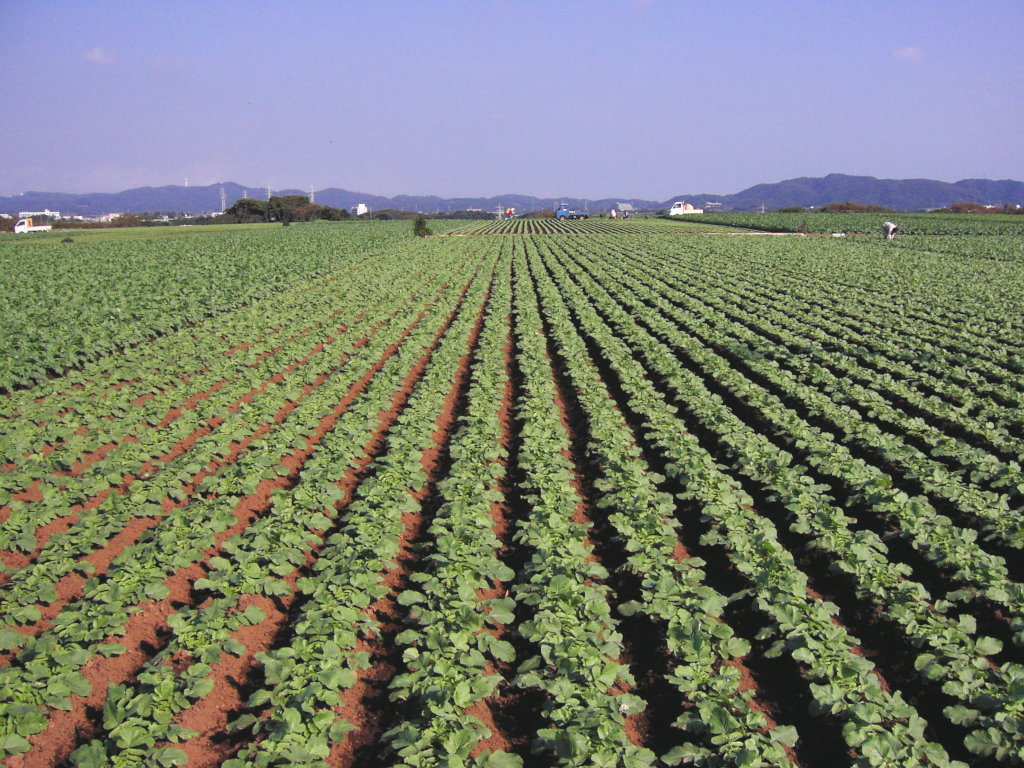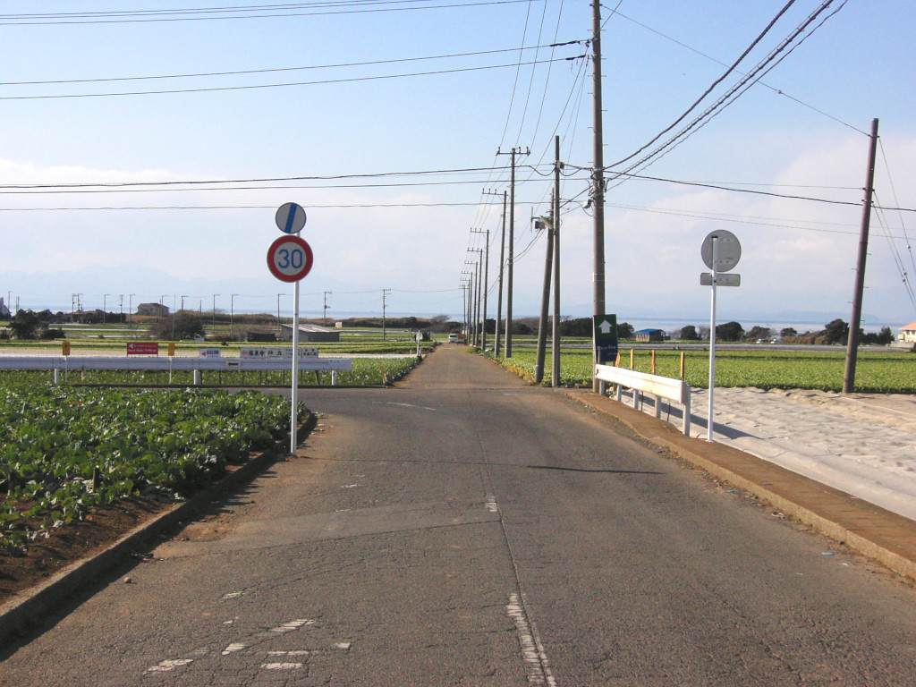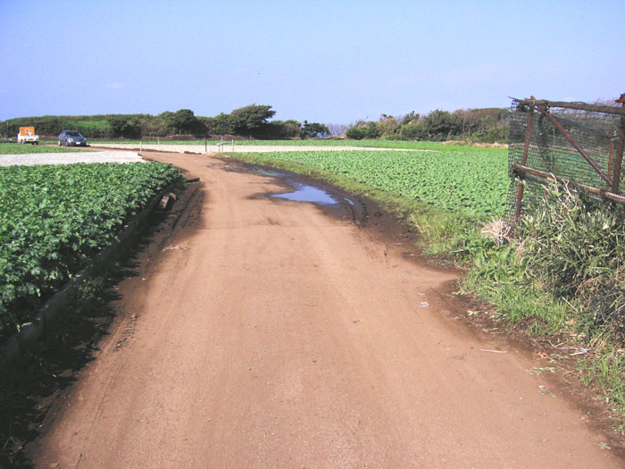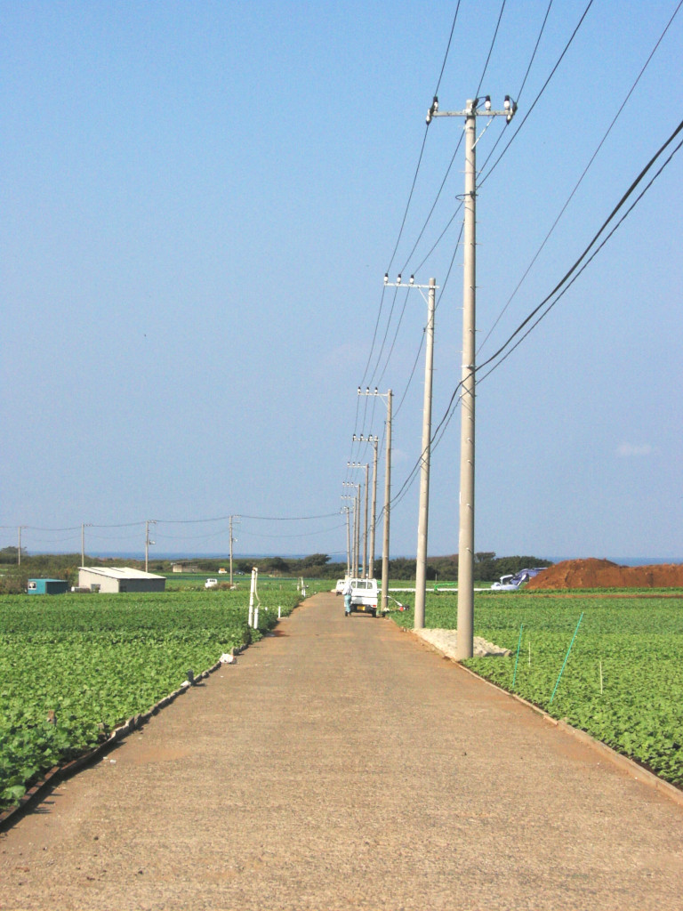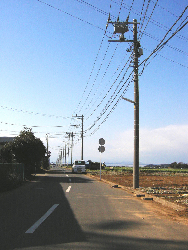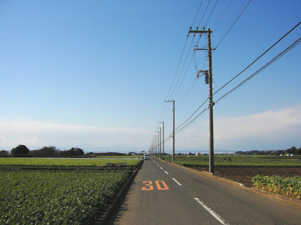 どこまでも続く電信柱と、 周りに広がる大根畑を楽しみながら、 丘の彼方へ続く直線を、 西へ西へ…