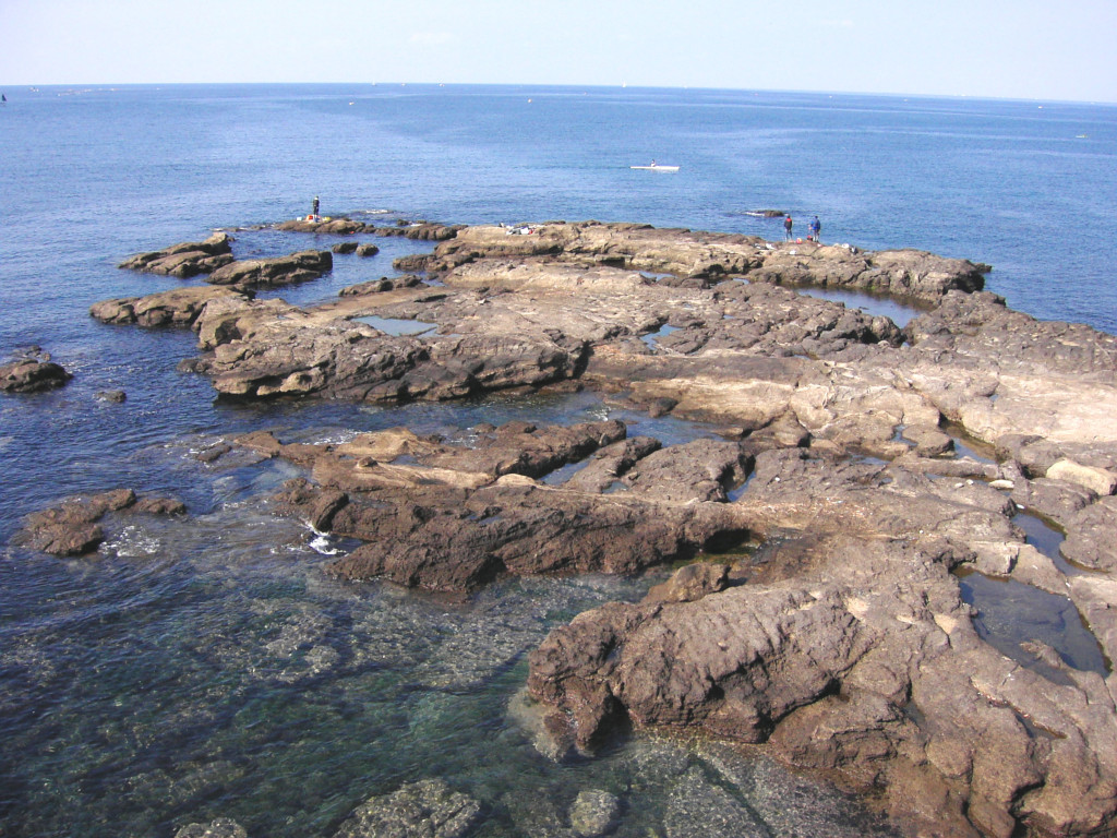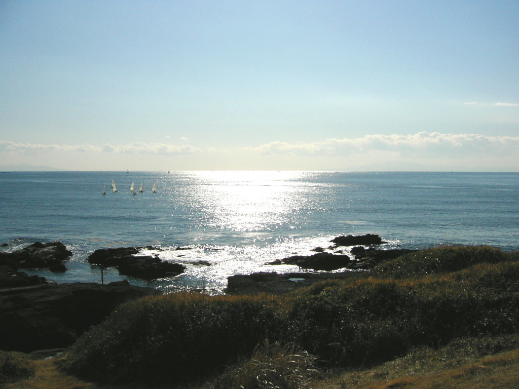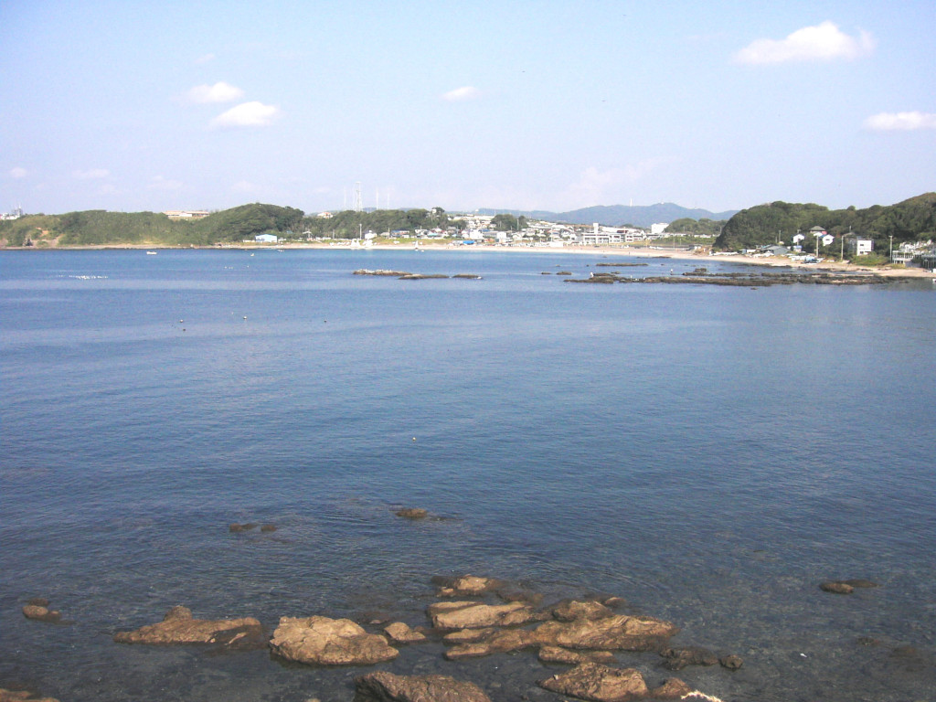 海に突き出した 高さ10メートルの岩場は、 ただ そこに行くだけで 数々の名風景を約束してくれる、 そんな 素敵なビューポイント です。 南に 三戸海岸、北には 和田海岸… 西に広がる 伊豆半島… 空気がすんでいれば、 北西に 富士山 も見えるかもしれません。