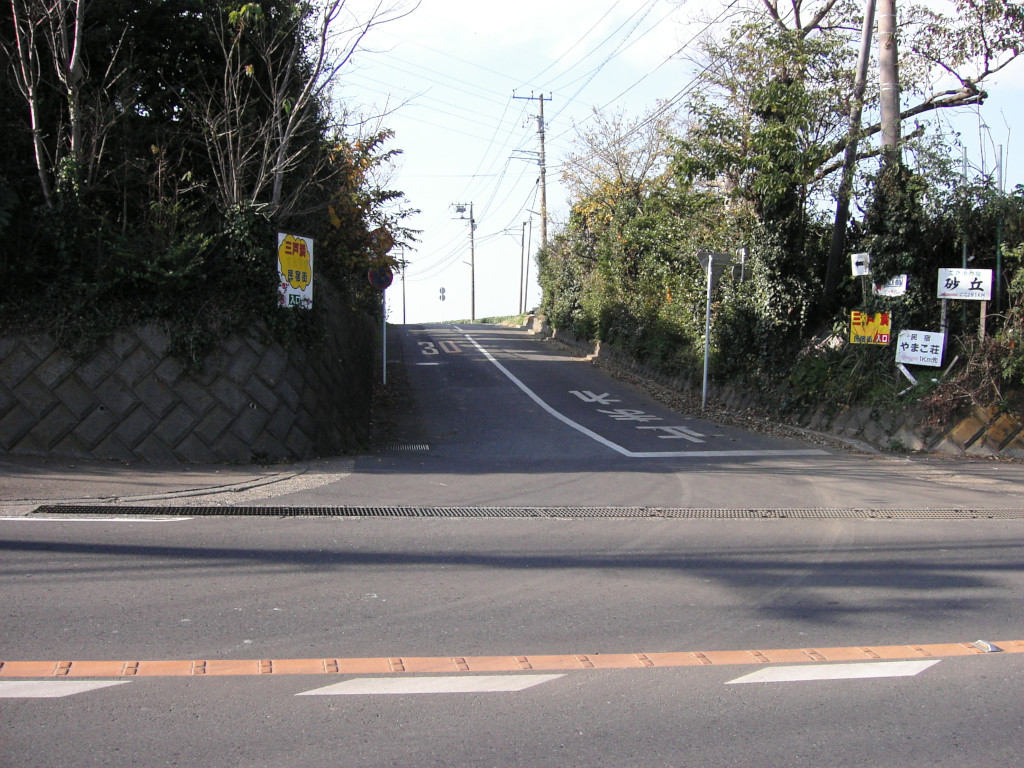 それでは出発です。 「三崎口駅」から国道134号ぞいに 北へ200メートル行ったところにある、 やや登りぎみのゆるい坂を左折すれば、 あとは ほとんど直線です。