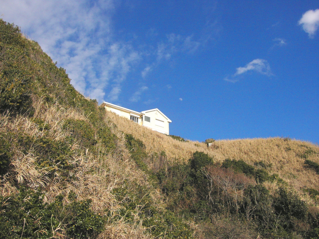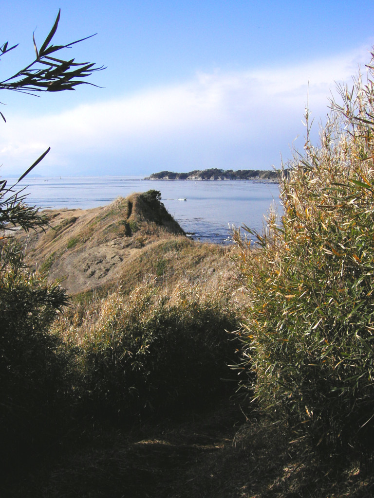 ところで皆さんは、 ここから 江ノ島 も見える、と 勘違いされてませんか? 第1話の見開きで そんな感じに描写されているので、 そう思い込んでいる人も多いでしょうが、 実は 黒崎の鼻近辺からは、 荒崎 に はばまれて、 「江ノ島」は見えない のです!