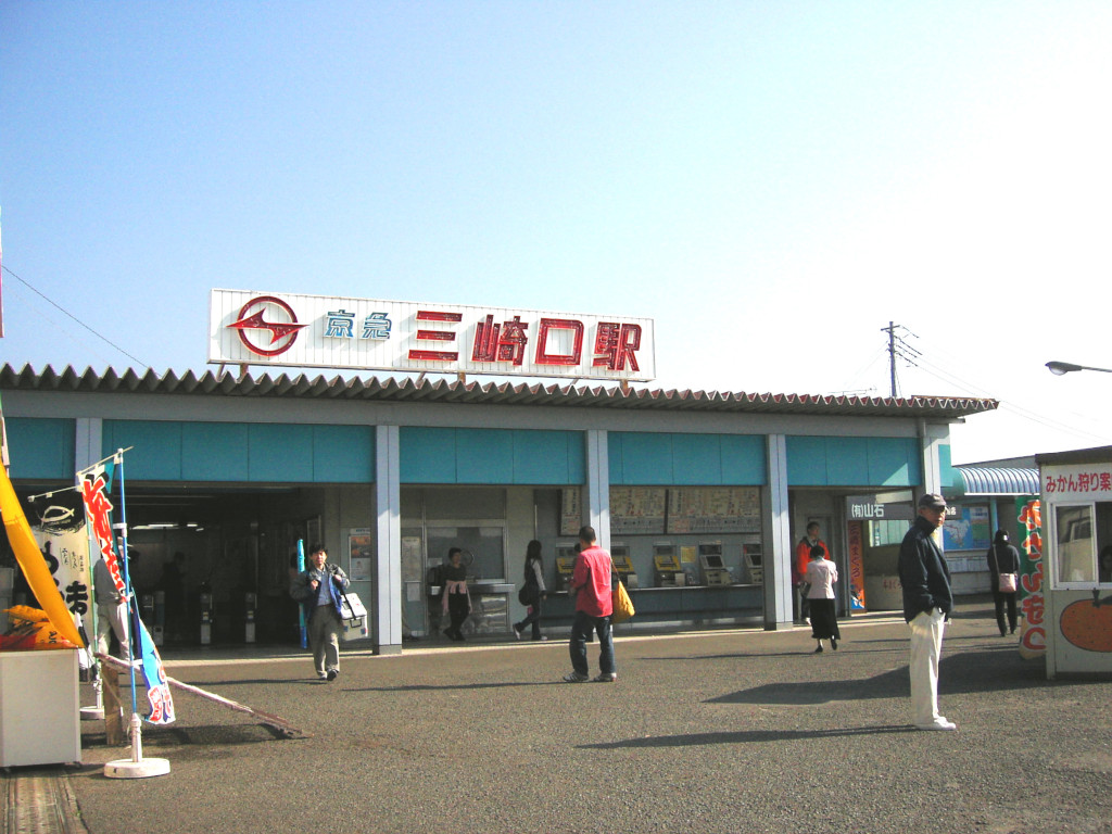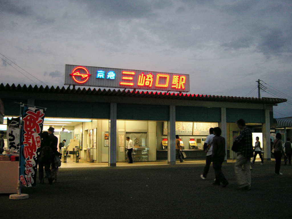 ちなみに『西の岬』の候補地としては、 先述の『黒崎の鼻』以外にも 僕が推している(笑)『三戸の丘』 という場所があります。 もし カフェアルファの場所が 後者だとすると、 おじさんの ガソリンスタンドは、 「もっと南に位置してもいい」 ことになります。 「小網代の入江」より北で、 「カフェアルファ」から あまり離れず、 ある程度 平地が広く、 南北に長い直線道路の東に位置する… そんな 都合のいい場所が あるのでしょうか? … ありました。 上記の条件を満たす場所。 それは… 京急『三崎口』駅前 です!