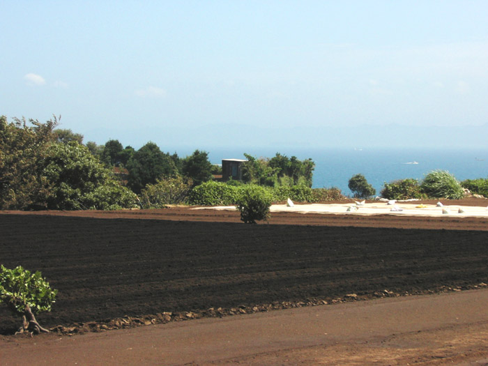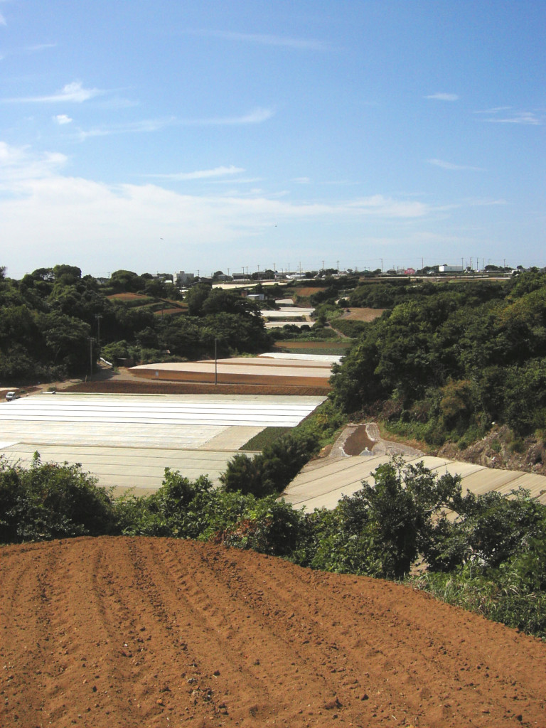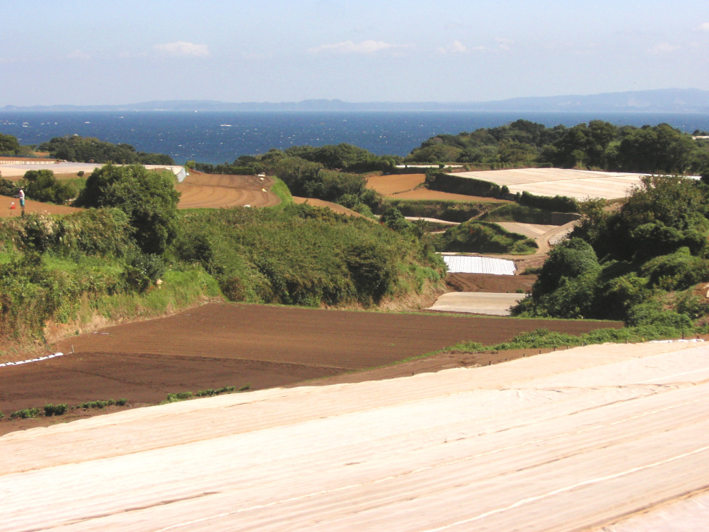 ちなみに、 画面下部の白い部分は、丘ではなく 「畑の土を覆うシート」です。 |
