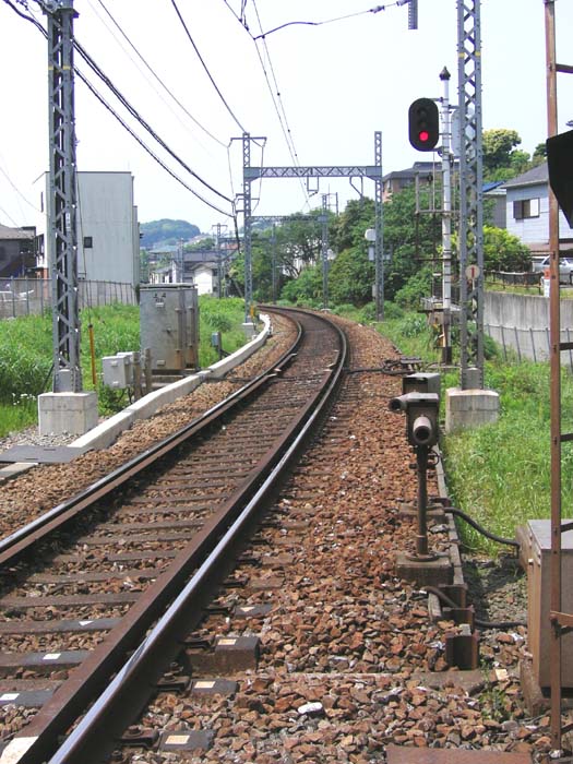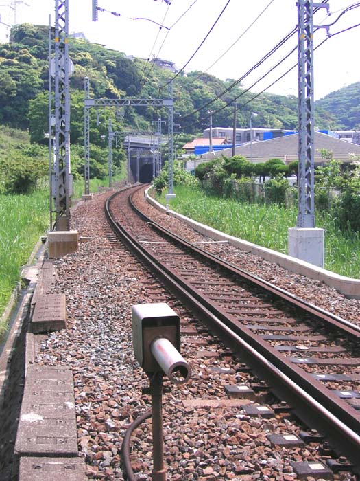 そんなふうに 半年ほど悶々とした結果、 「とにかく一度、現地に行ってみて、 現物を見てから考える」ことにしました。 こんなに後回しになったのは、 地図を見るかぎり 付近に 良い風景 が 無さそうなのが予想される上に、 京急久里浜 〜 YRP野比間が 3.5 キロもあった(当然 徒歩) からです。 で、当日。 途中 たまたま見つけた 『くりはま 花の国』にも寄って、 件の道路を歩いてみたのですが… 悲しいほど 予想通り の 光景で、 ガックリでした。 山あいの町という事もあり、 風景も遮蔽されて息苦しい。 とても 海岸のそばの町とは思えません。 肝心の線路も、 久里浜 に 近いところでは 予想以上にアップダウンが激しく、 道路と平行になってくれません。 |