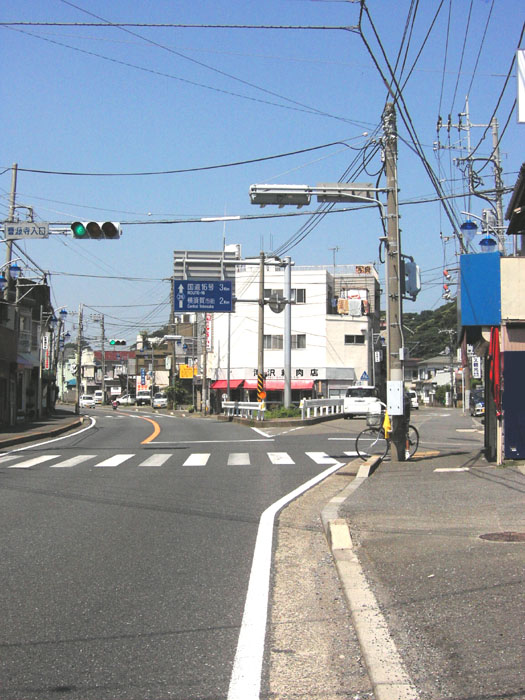 『第22話「ヨコスカ巡航」の道中で、 道が左にカーブしている場面は、 雰囲気から「曹源寺入口」周辺を 衣笠方面から見た感じかなーと思っています』 ヨコハマファンである ちーそんさんから そんな情報提供をいただいたのは、 2007年の7月頭でした。 今までも たまに、 「アルファさんが 北の町 に行くときに 通っている道路は 県道26号としか 考えられない… それなら、武山駐屯地 から 横須賀 までズーッと歩いていけば、 漫画内と一致する光景 も たくさん見つかるだろう」と、 考えることはありました。 が、その総距離は 実に 8.5キロ … バスでは何度となく通っている道ですが、 徒歩のみで挑む には厳しい距離です。 街中なので、 疲れたときに気軽に腰を下ろして 飲食をするのも難しそう で、 ついつい 先延ばし になっていました。 そんな 腰が引けていた自分の背中を、 ちーそんさんから舞い込んだ この情報 が 押してくれました。 「一気に全てを踏破するのは無理でも、 取りあえず この交差点近辺だけでも 先に確認しておこう…」 そんな気持ちに させてくれたのです。 |