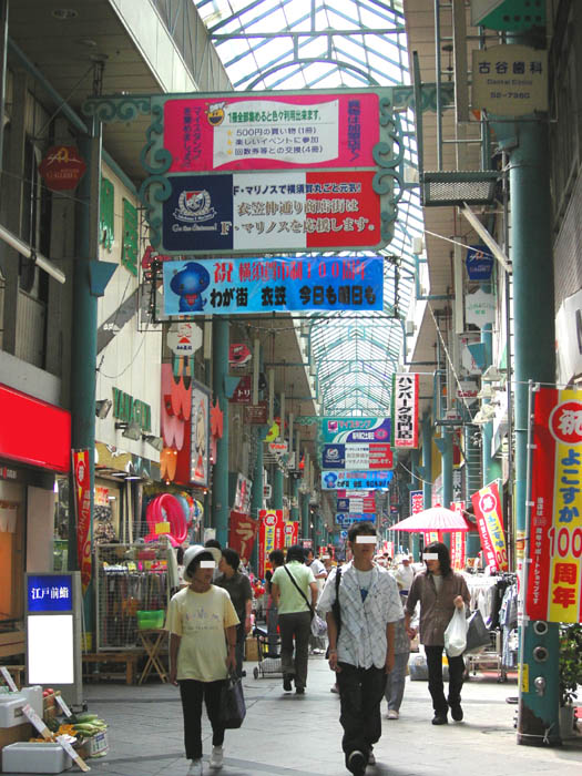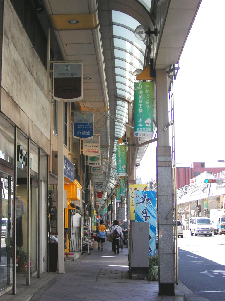 さて、現地への アクセスです。 JRを使う方なら、 もちろん『衣笠』駅で下車。 京急なら、『横須賀中央』駅で降りて、 『衣笠駅』行き(税務署経由)のバスに乗って 終点(衣笠駅)まで行きましょう。 時刻によっては、 5分に1本ほどのハイペースで出ています。 衣笠駅からは、 大通りにそって南東へ進めば、 ズラリと並んだ商店街を 楽しむことができます。 1本線路側の アーケード通り に入って、 よりカラフルな商店の数々を 楽しむこともお忘れなく(笑) |