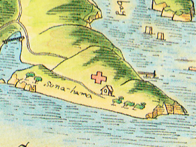 実は、このページを 2023年12月に書き直すまでは、 疑問点は上記の「2点」だけでした。 ところが、今回 書き直しのために 第14・15話 を読み直したところ、 ある 大変な事実 に 気がついてしまったのです。 (というか、『子海石診療所』の場所が 確定した結果、出てきた大矛盾です) 先述の通り、 『子海石診療所』の モデルとなった場所 は、 ファンの間で 「ORANGE FOOT から見て 500メートルほど東にある 現『久里浜 医療センター』の辺り」 と言われており、 「ポストカードブック」の ヨコハマ地図 でも、 かつての野比海岸の中ほど に 建物が描かれています。