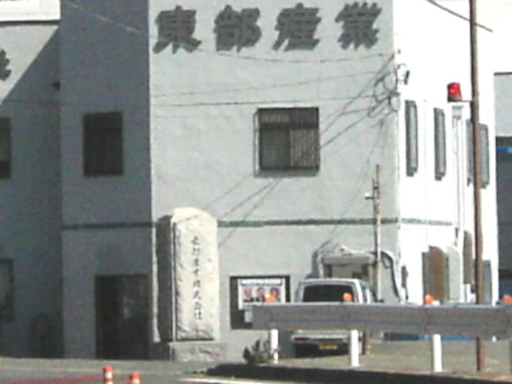 残念ながら 自販機コーナーの看板 は すでに無く、 建物の窓には 選挙ポスター(?)らしきものが 貼られているのみでした。 芦奈野先生 が この近辺を 元フィールド(笑)とされていた当時は、 この自販機コーナーが機能 していて (社外の人たちにも開放されていて) それが「コンビニのような施設である ORANGE FOOT」という形で 作中に反映されたのかも… と 考えると、 色々と合点が行くところがあります。 地理的な矛盾は残りますが、 少なくとも 「東部産業 = ORANGE FOOT」の線は かなり堅いのではないでしょうか?(^^ |