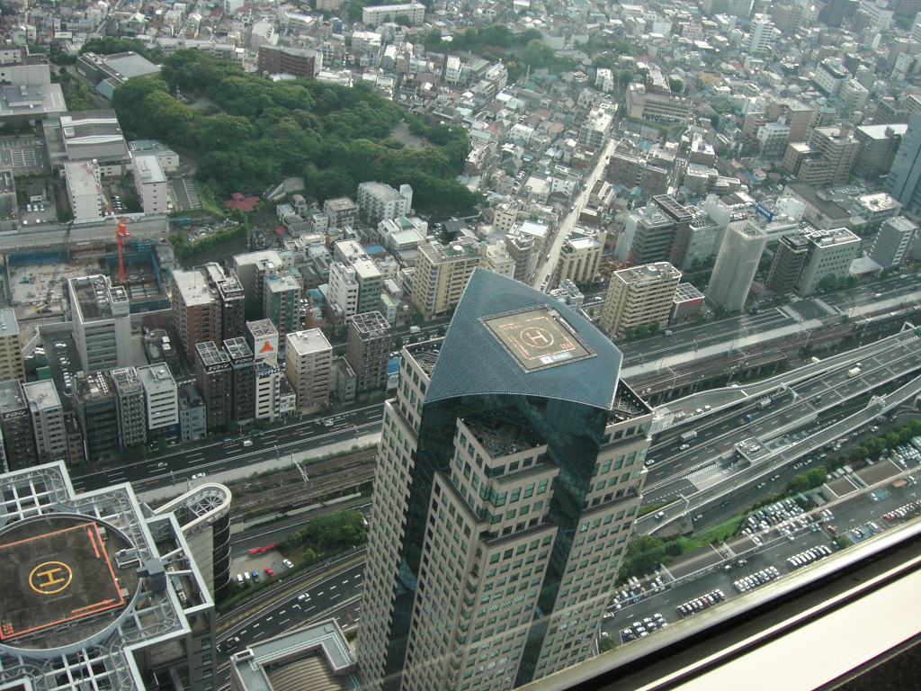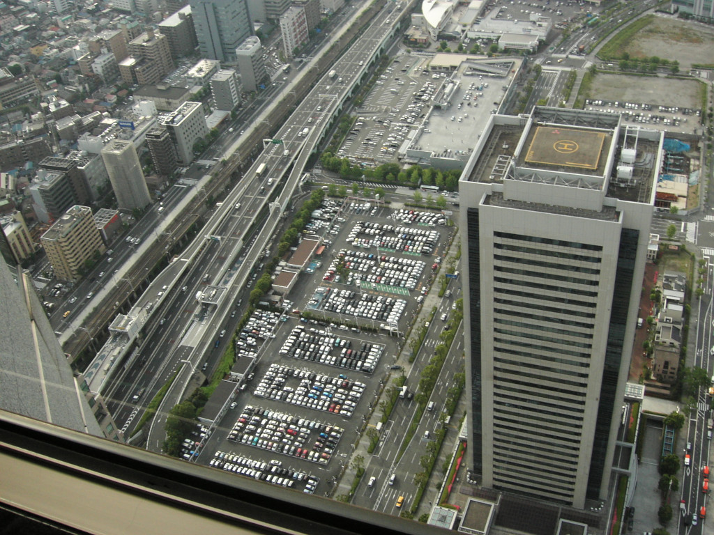 ちなみに、当初から、 「ランドマークタワー は サンシャイン60 と 高さ的には大して違わないのに、 どうして こんなに圧倒的に高く 感じるんだろう…?」と 不思議だったのですが、 この方向の景色を見ていて ピンと来ました。 周りの建物が低い のです。 普通ーの商店街や住宅地が 集まっている所を見下ろすので、 相対的に より高く感じるのですね。 |