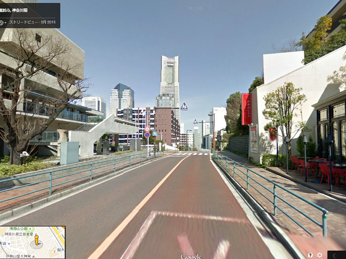 あと、第0話で アルファさんが 野宿 したのは、 ランドマークタワーの向きなどから、 この道路の北 200メートルほどにある、 『掃部(かもん)山 公園』 ではないかと思っています。 (ただ、33話の「紅葉山商店街」から見たランドマークタワーが、 下半分しか見えないほど巨大に描かれていることを考えると、 「掃部山公園」だと近すぎるかな…? という気も、 一方で しています。 これはやはり、他の現地系サイトで言われている通り、 『野毛山公園』がモデルであり、 ランドマークタワーの向きについては 「見栄えを良くするために、芦奈野先生がアレンジした」… という所なのでしょうか?) |