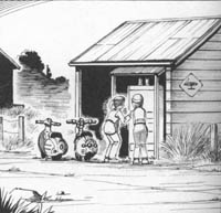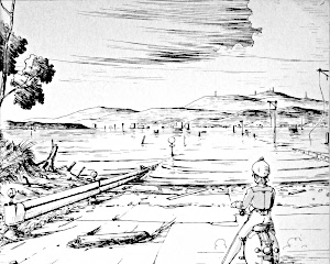 (この写真は そのサイト様のものではなく、 後年 僕が 同じ場所から撮影したもの になります) 野比海岸付近にあるといわれている 子海石診療所 から、 (おそらく)カフェアルファ へと 帰宅していく途中のシーンですから、 流れ的には おかしい所は無い ように思えます… ところが、 漫画内の背景の地形 を見ると、 ある 大きな矛盾 が あることに気がつきます。 (詳細は『子海石診療所からの帰り道』を ご覧ください) |